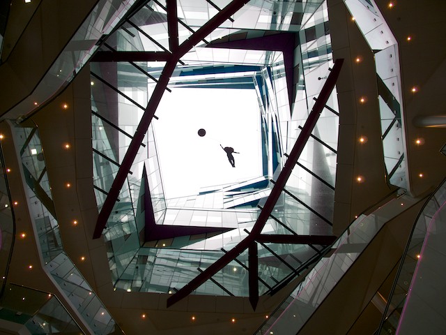 Finally to The Cube itself looking up at one of the art works in the main building.