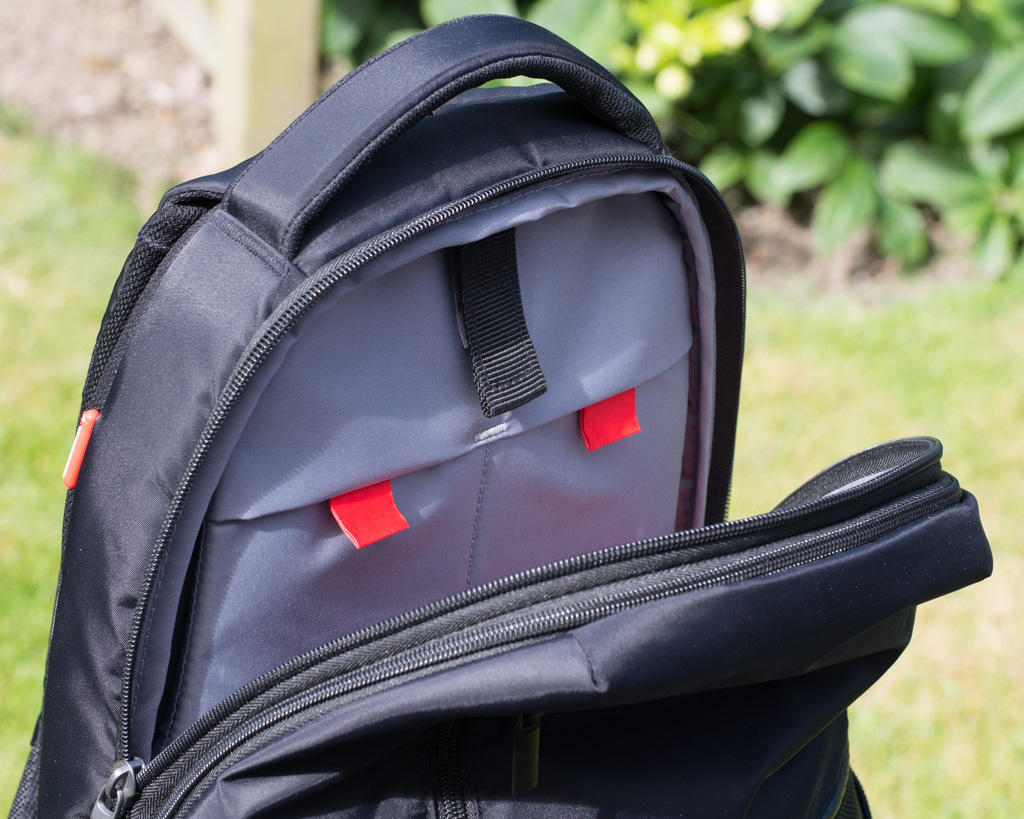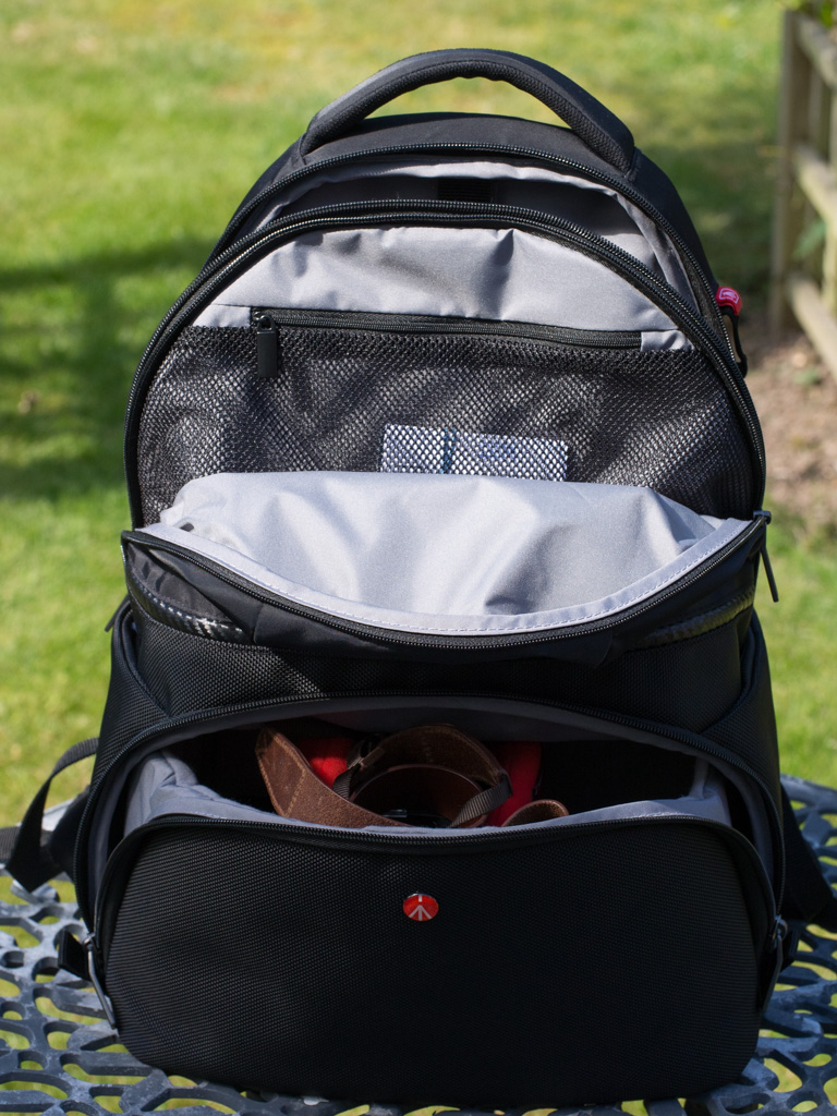 The top storage area is great for additional items such as power cables, maybe a flashgun and memory cards etc.