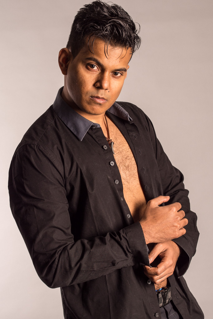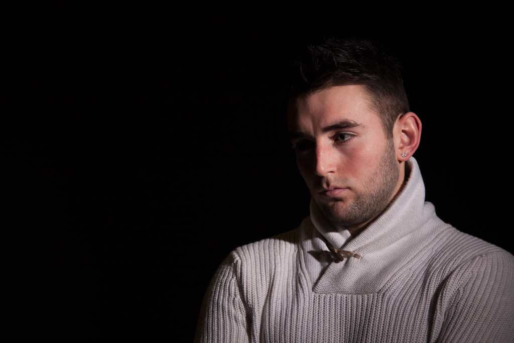 Men do pose particular challenges when facing up to the camera, they are not always as responsive as women and I think, unless they have some training as models, often feel a bit more awkward when peering down a lens barrel. They also pose some challenges for the photographer. In a studio at least the usual high key beauty lighting does not particularly work for men, their features suiting side, and maybe more low key, lighting. That’s okay though, as a photographer it is after all good to explore new styles and step outside your comfort zone.