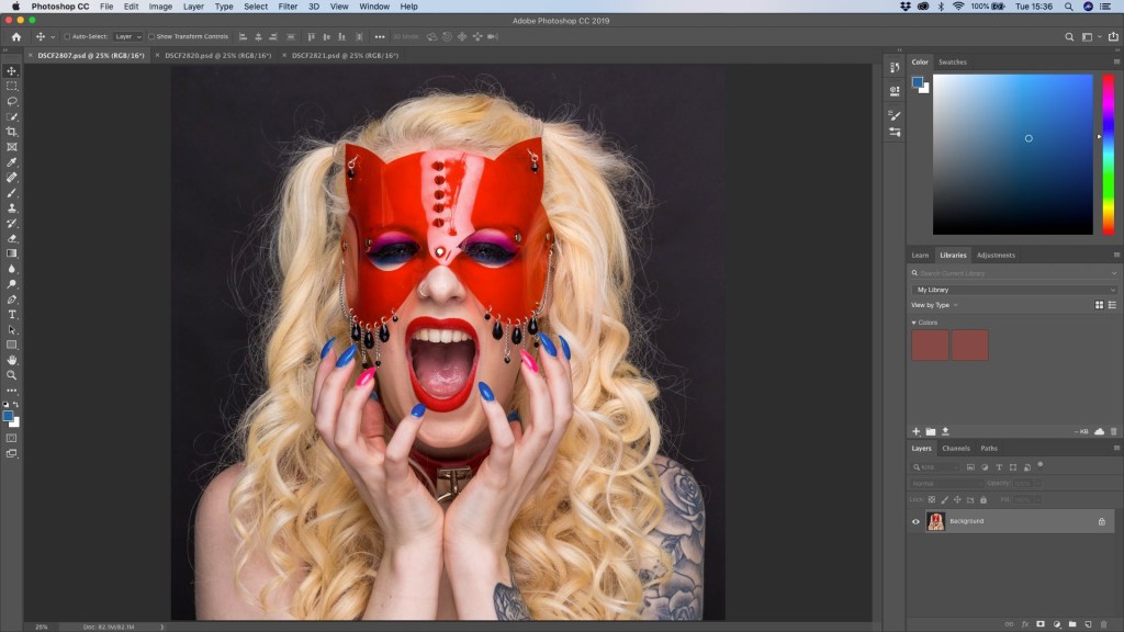 The images will open in Photoshop as three separate files as shown by the tabs in the below.