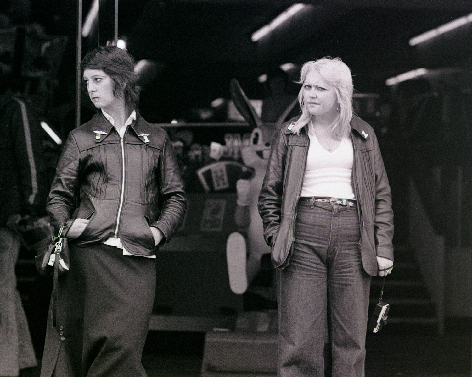 The book I own about Herzog, Fred Herzog: Modern Color, as you would expect, is mainly his colour street work so why this black and white image of mine as inspiration? This was taken in Blackpool in 1979 so is one of my very early street photographs. Not knowing what I was doing particularly I saw these two girls standing outside an amusement arcade and, more out of fear than anything else, pointed my camera at them from waist level and snapped this image. Remember, this was pre-digital so I had no idea what I had until I developed the film over a week later. First I was amazed it was not only properly exposed but also framed the two girls really well. Second I realised the blond girl had rumbled what I was doing and given me the evil eye. I think this very much adds to the image however and really illustrates what Herzog means about not asking permission – something I still rarely do 45 years later.