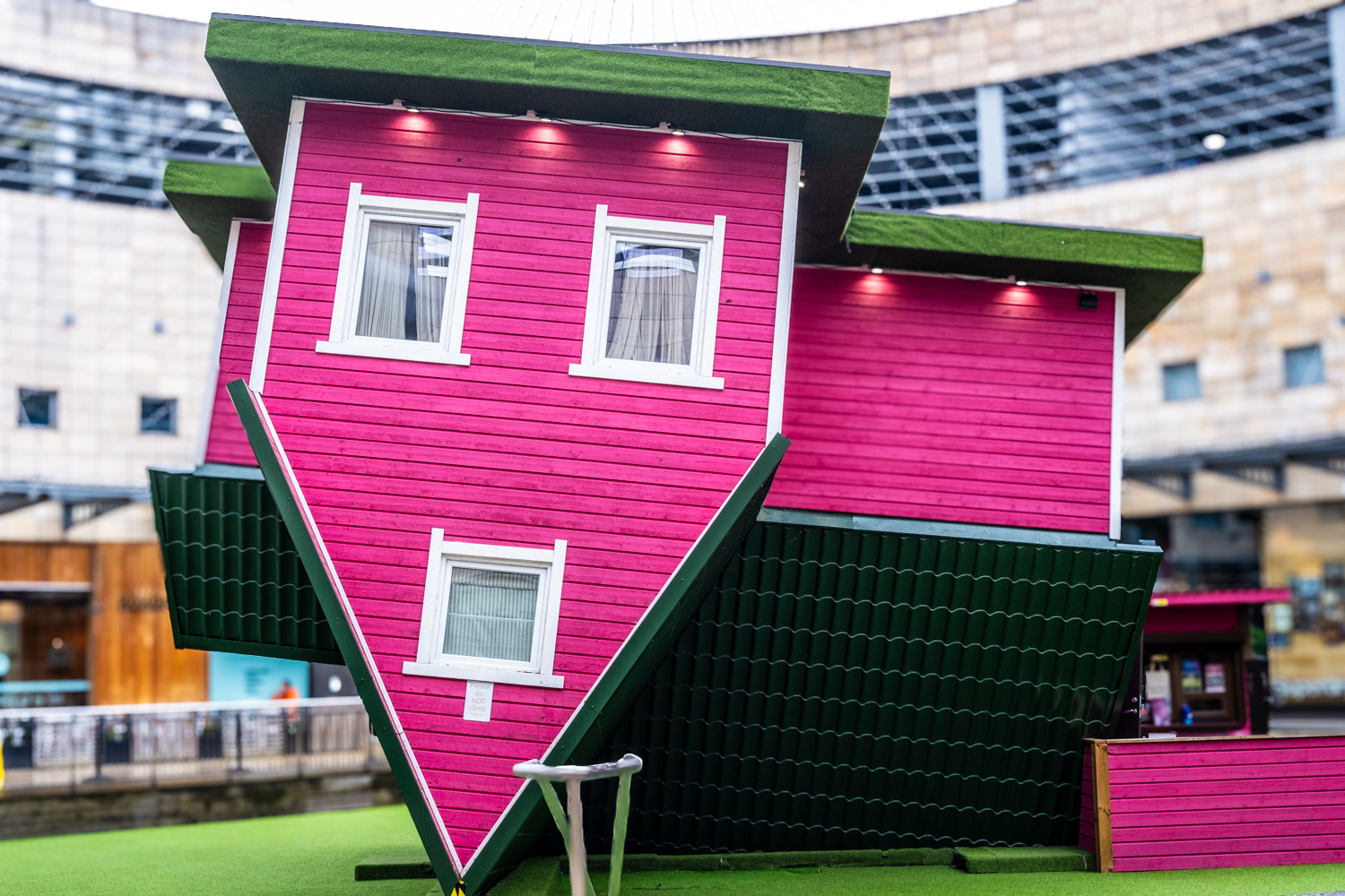 I came across this upturned house whilst on a visit to Milton Keynes earlier this year (actually to visit the Saul Leiter exhibition at the MK Gallery). The bright colours and unlikely scenario were too good to not photography despite being confronted by a security guard about needing permission.