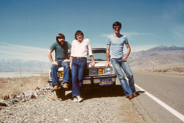 It was 1981, and I’d been in my first job for two years. I decided it was time to spend some of my newly earned salary, so two friends and I organised a three-week trip to the United States. We planned to spend part of it on a road trip in California. Here we are somewhere on CA-190 (I think), approaching Death Valley.